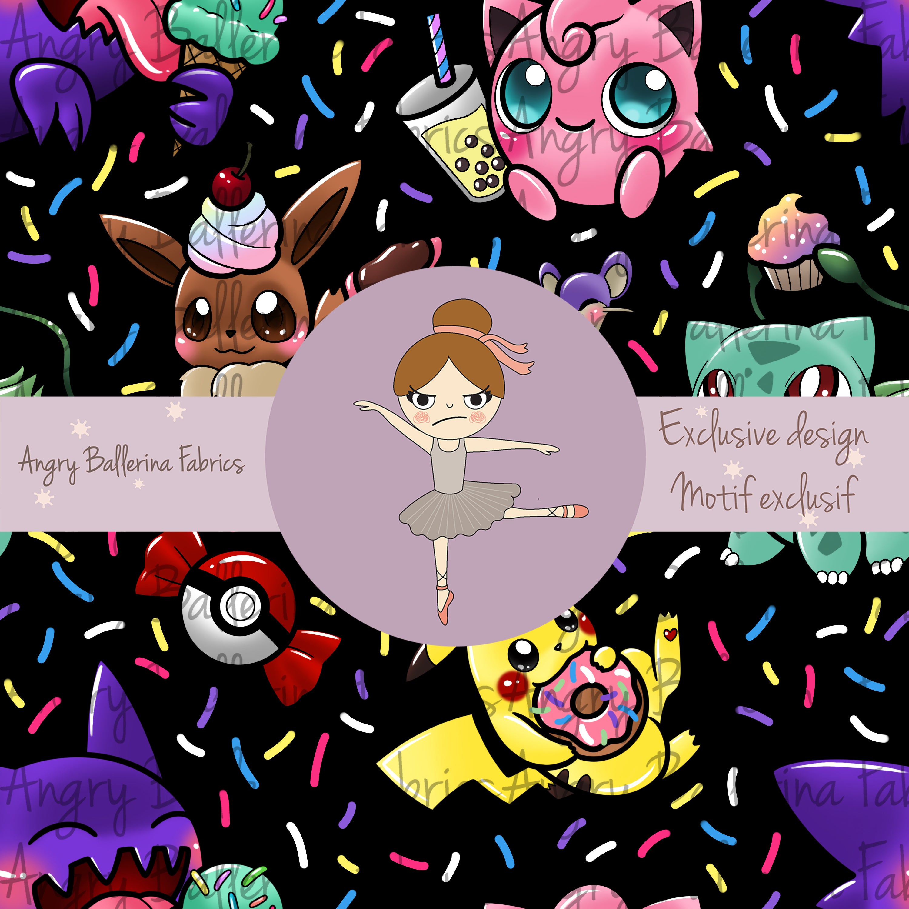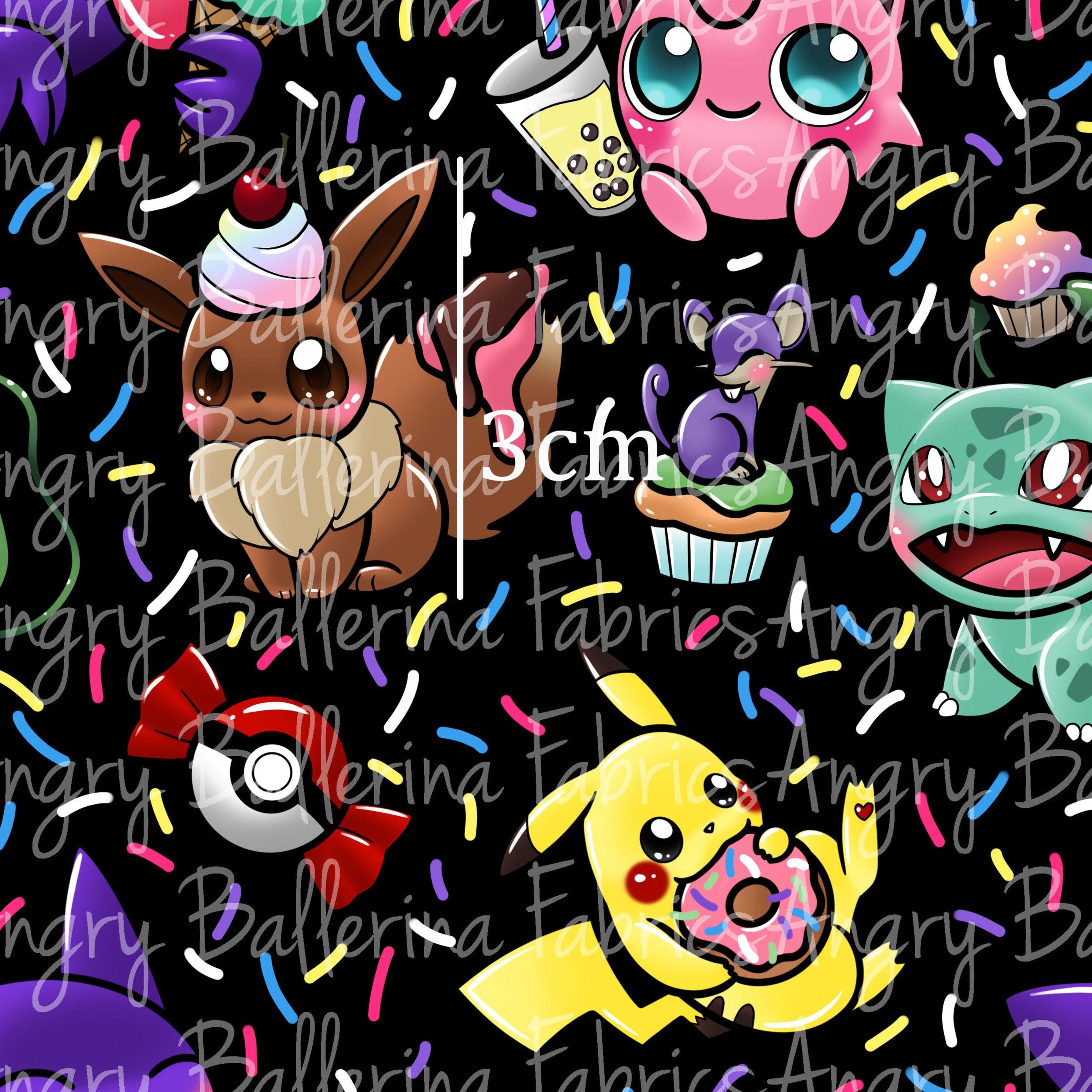 Flashy Pocket Monsters Sweets - Black - MINI SCALE - Jersey Knit *Exclusive Design*